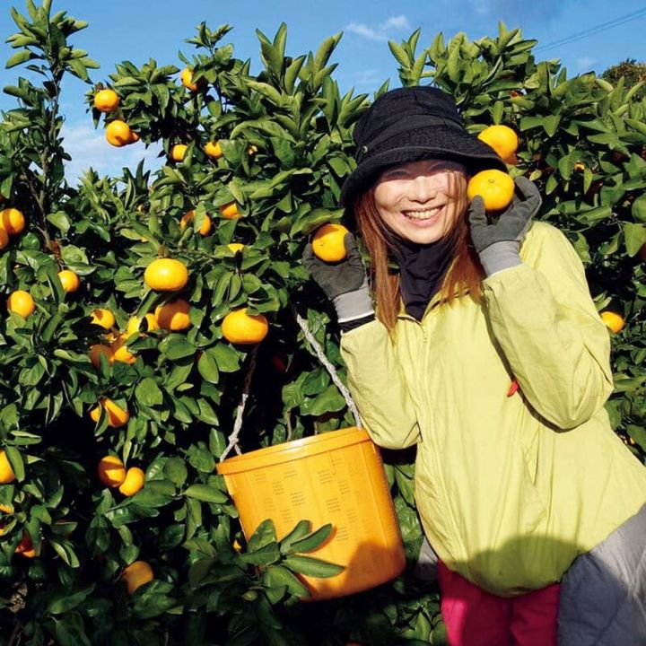 愛媛県八幡浜市のみかん農家で収穫作業。