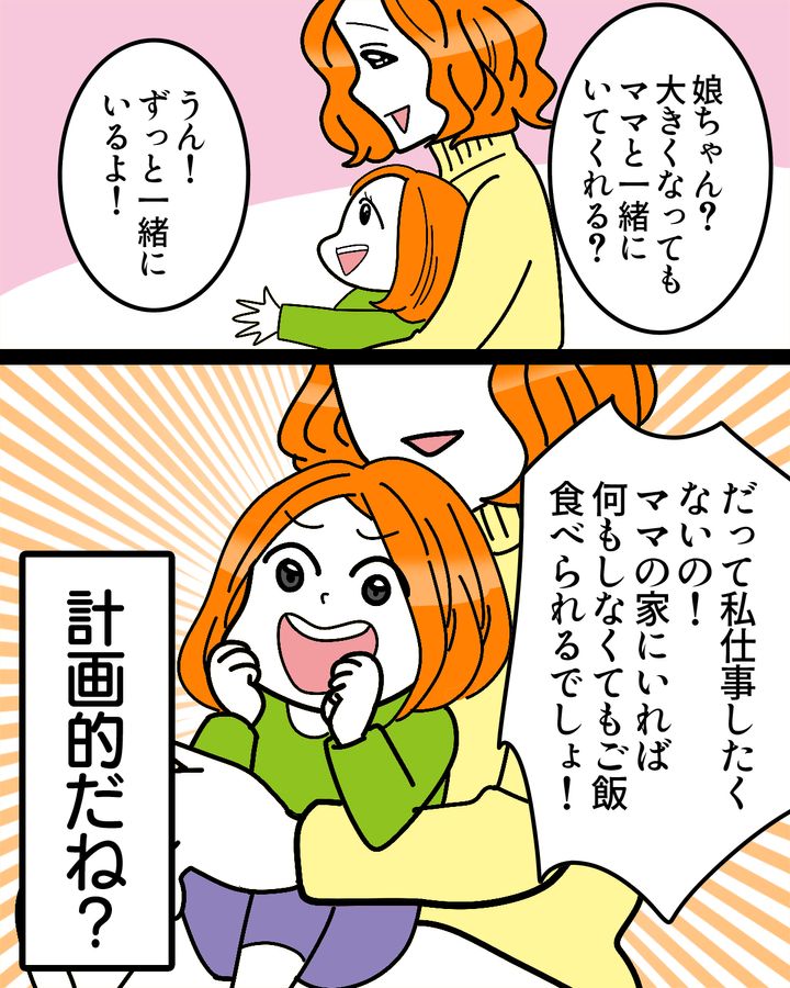 娘「だって私、仕事したくないの! ママの家にいれば何もしなくてもご飯食べられるでしょ!