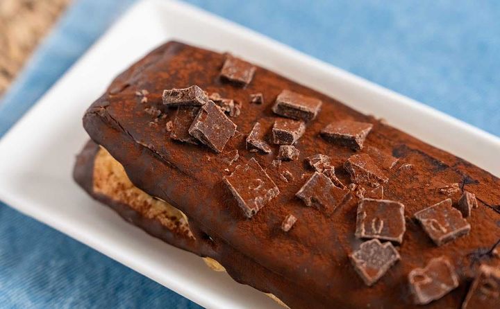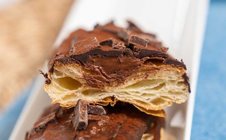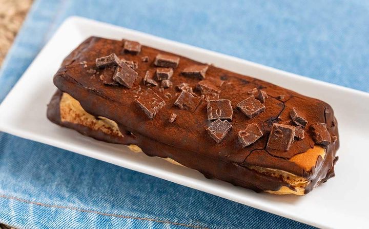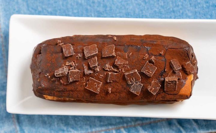 長方形のデニッシュ生地の上にチョコがたっぷりとトッピングされています。