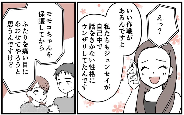 私はチグサ。私たち家族の愛犬モモコを連れ去った、夫の妹・サナちゃんに連絡をしても、一向に連絡がとれません。なんとかサナちゃんの婚約者・ジュンセイさんと連絡をとるも「返したくない」というのです。困り果てた私たちは、ジュンセイさんのご両親に状況を説明して、ジュンセイさんを説得してもらおうと思っています。