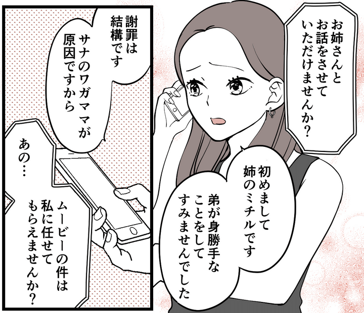 ジュンセイさんのお姉さんと電話で話しました。お姉さんはまず、弟が迷惑をかけてしまったことを丁寧に謝ってくれました。そして、弟のジュンセイさんには、自己中心的でワガママなところがあり、いつか痛い目にあうべきだと常々思っていたと打ち明けてくれました。その後、今回の件については、自分に任せてもらえないかと申し出てくれたのです。