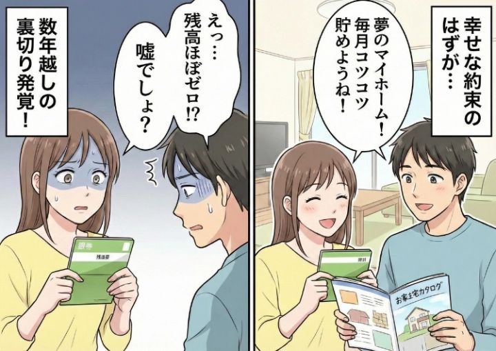 結婚3年目を迎える私たち夫婦は、新婚当初から「将来のマイホーム資金として、お互いの個人口座に毎月決まった額を貯金しよう」と約束し、将来の計画を立てていました。夫は私より収入も多く、仕事も順調。浪費するタイプにも見えなかったので、彼ならしっかり貯めてくれていると信じて疑いませんでした。私は毎月欠かさず自分の口座に入金し、目標額に近づいていく通帳の数字を見ては、二人で過ごす幸せな未来を想像していました。