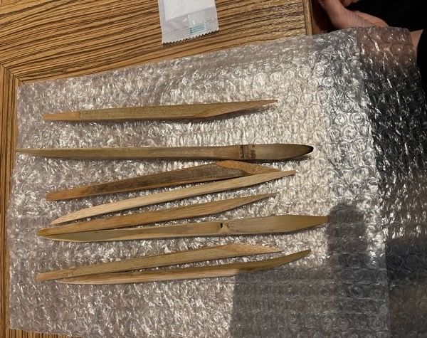 アトリエクレッシェンドサロンオリジナルの竹べらは、反っていたり、弾力があったり、刀の形状だったりと色々な種類があります。