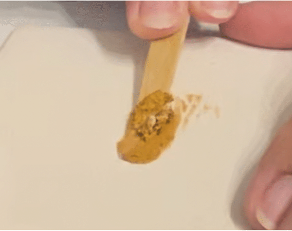 3分間以上、しっかり練っていくと、金色の艶が出てきて、柔らかいパテ状になります。