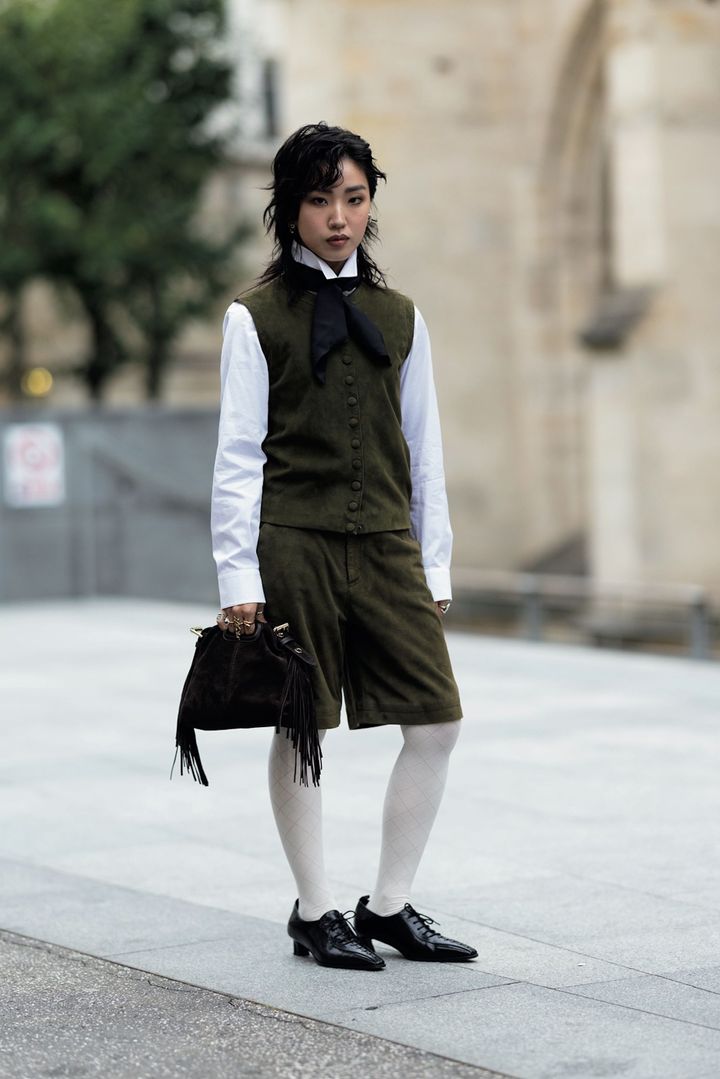 ファッショニスタたちはタイトにタイドアップしながらも、ダンディズムなイメージに傾きすぎないよう、スカートとの合わせや肌見せ具合でバランスを巧みに調整していた。ブラックやネイビーが基調のネクタイはシックな装いに取り入れやすく、色柄物はより一層ファッショナブルなスパイスとして機能する。ウエストに巻いたり、首にかけたりと、アイデア次第でいろいろなアレンジも楽しめそう。