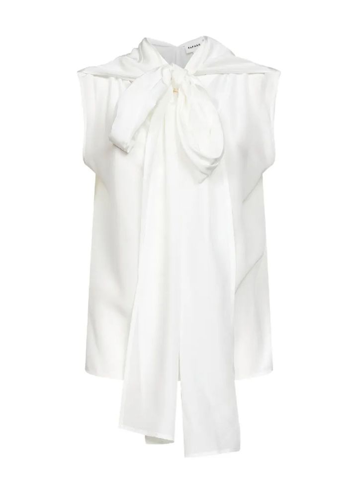 タフでハンサムなネクタイとコントラストをなすように、ロマンティックなムードを好む人たちはボウタイブラウスに夢中。ワントーンのクリーンな装いも、首もとにボウタイを巻いたり垂らしたりするだけで、奥行きを感じさせるグラフィカルで立体的な表情に変化する。
