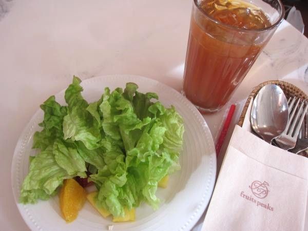 セットのドリンクは、アイスティーにしました。フルーツサラダが付きます。フレッシュなお野菜とフルーツがもりもりで、ジューシーで美味しかったです。