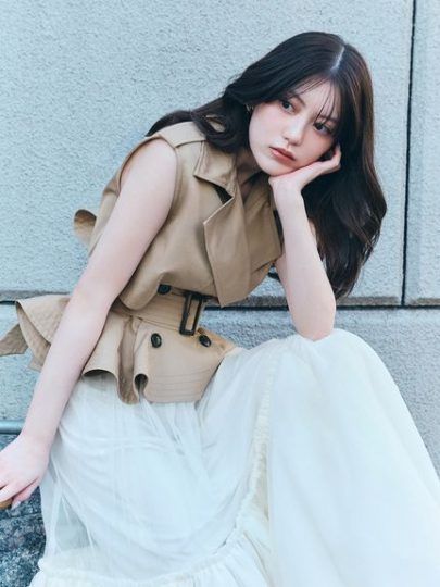 クラシカルなノースリトレンチトップスとチュールスカートのレディなセット。透明感のあるチュール生地を重ねたスカートは、空気をはらんだような軽やかな広がりに気分も上がります。ロングトップスを仕込めば今すぐ着られて、単品使いでも着こなしの幅が広がるのところが魅力です。