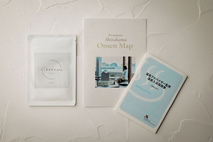 白浜の足湯スポットが紹介された街歩きに便利な湯めぐりマップや、ホテルの源泉の一つで、日本有数の名湯として美人の湯とも言われる、白浜温泉「藤乃湯」のシートマスクもついてくる。湯上り後は、お肌にたっぷり水分補給してあげましょ。