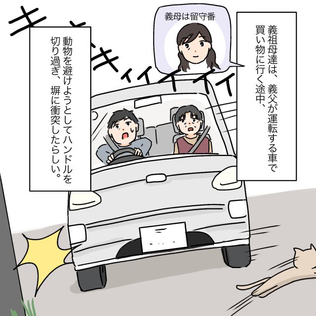 義父が車の事故に遭ったと義母から連絡があり、驚いて病院へ駆けつけた夫太郎と私。
