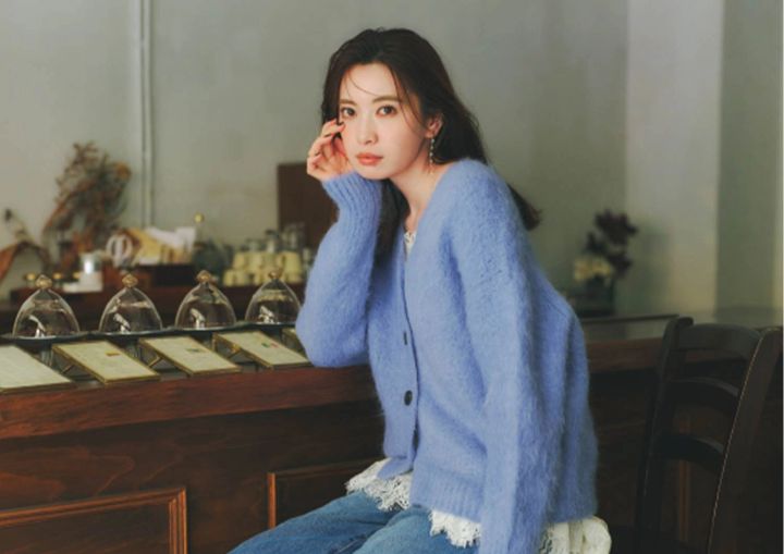 繊細なレースが素敵なキャミソールをシャギーカーデに仕込んで、裾と胸元からチラ見せ。ブルーデニムやフラットシューズでカジュアルに振ると、ヘルシーな色気が漂うOFFの日コーデが完成。レイヤードが映えるように、カーデはVネックがおすすめ!