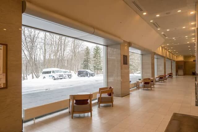 ▲大きな窓から景色が楽しめるロビー
