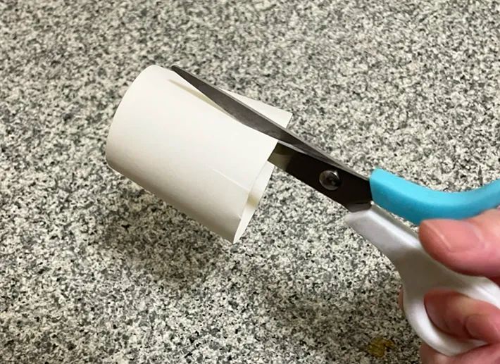 次に、飲み口側から、縦方向に切り込みを入れていきます。切り込みは深めに、複数あったほうがきれいに仕上がりますよ。