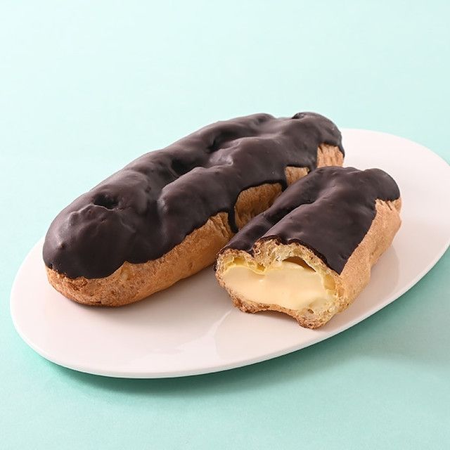 ビターでパリッとしたチョコと、なめらかなカスタードが楽しめるエクレアです。