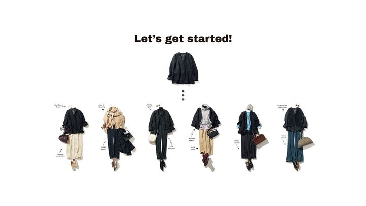 クセがないことで何にでも合う、装飾性を省いた黒にはオシャレを楽しむ余白があるから。気になる新しさ、理想のスタイルバランス、少し凝ったアレンジまで。多くを求められる黒ジャケットを起点にスタイリングパターンを拡大。