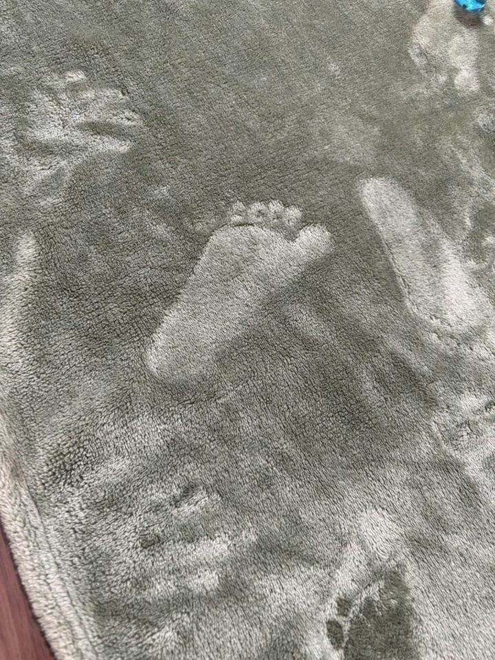 ふわふわの毛布にはあちこちに歩いたり、手をついたような跡がはっきり残っています。手形足形をつけ、撫でるとすぐに消え…お子さんにとっても楽しいのでしょうね。絵具などで手形足形を残すことは準備や片付けが大変ですが、毛布上の手形足形も思い出になりいいですね!