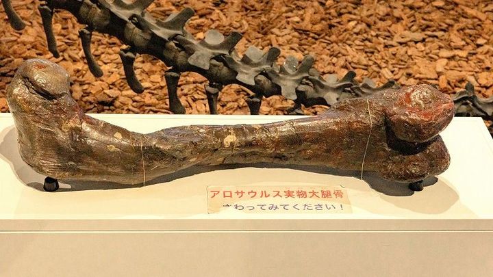 アロサウルスの大腿骨(実物化石)触っちゃったよ〜!