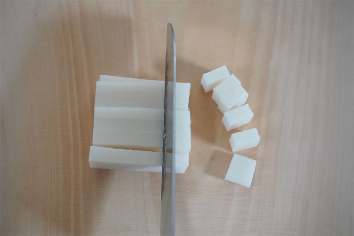 餅は火が通るように薄くスライスします。