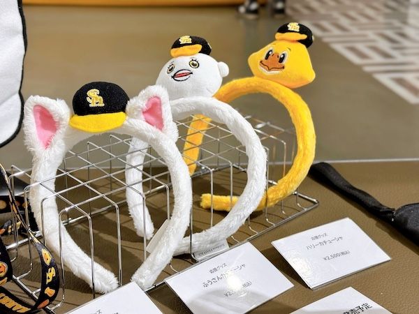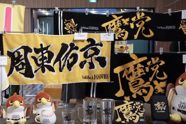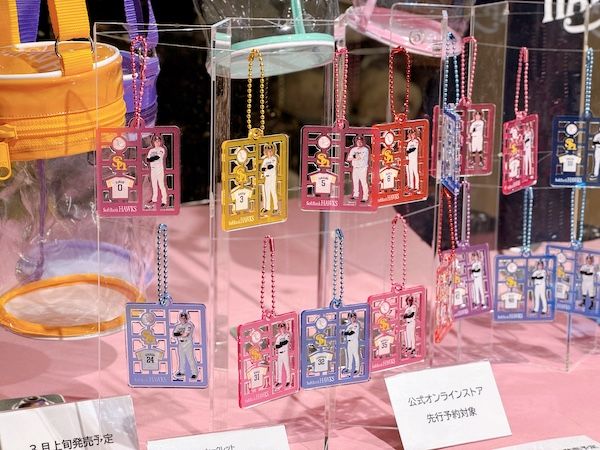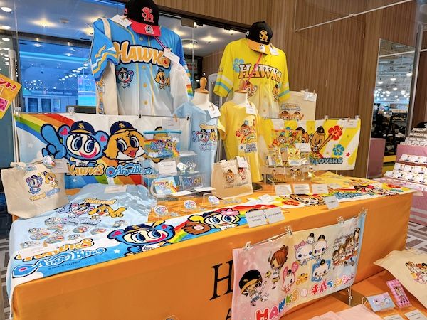 会場となったみずほPayPayドーム福岡内ナッツRV 8ゲート外の「HAWKS STORE HOME」には、今シーズンから登場する約250点もの新グッズが所狭しと並べられていました。 色鮮やかなアイテムやタオルが目に飛び込んできて、取材中なのに思わず「あれ欲しい!」とプライベートの顔が出てしまうほどの迫力。昨今の平成女児ブームで特に人気を集めそうなグッズも多数展示されていましたよ♪