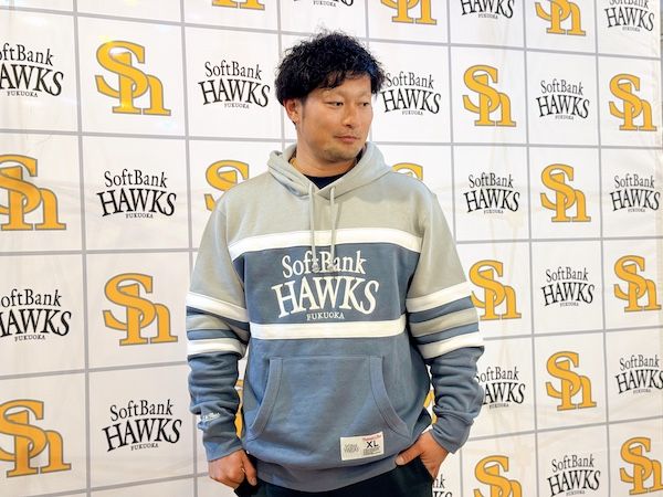 さらに、お披露目会のスペシャルゲスト・元ホークスの森唯斗さんも着用していた『【Mitchell&Ness】サンダーストーム・ヘッドコーチ・パーカー』(16,500円)は、絶妙な淡いカラーが普段着としても優秀なアイテムに。