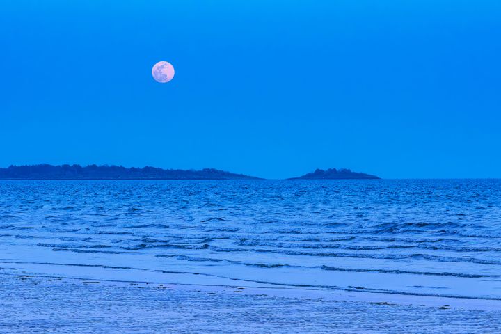 2026年のスノームーンは2月2日(月)の7時9分頃に満月を迎えます。この時間は既に太陽が昇っていて空が明るいため、前日の1日の夜か、2日の夕方以降の観察がおすすめ。東から昇り、南の空の高い位置を通り西に沈んでいくため、一晩中まん丸な月が観測できるでしょう。