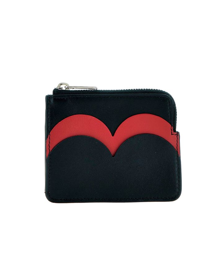 ハートのカーブを再現したポケット。黒に鮮やかな赤が映える。