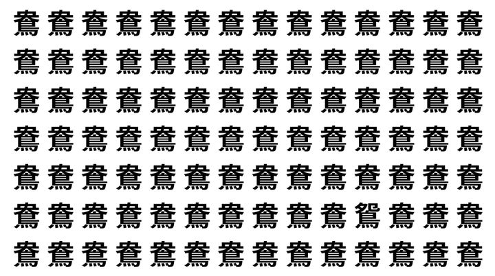 たくさんの「鴦」の中に、よく似た別の漢字が1文字だけ隠れています。