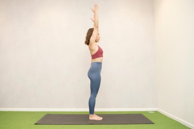 (1)直立して両腕をまっすぐ上げる