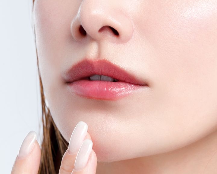 ブラーリング カラー ブラッシュのハイライト部分を指にとって鼻先や顎に軽くのせて。ポイントで光をキャッチして肌に奥行き感を出します。