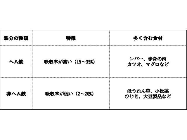 鉄欠乏性貧血の予防・改善の基本は、毎日の食事です。鉄分には、肉や魚に含まれる「ヘム鉄」と、野菜や豆類に含まれる「非ヘム鉄」の2種類があります。ヘム鉄の方が吸収率が高いですが、バランス良く摂ることが大切です。