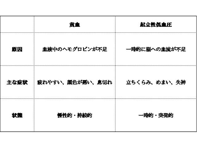 診察室では、保護者の方からこのようなご相談をよく受けます。一般の方にとって「貧血」という言葉は、立ちくらみやめまい、失神といった症状を指して使われることが多いようです。しかし、これらは医学的には「起立性低血圧」と呼ばれる状態であり、血液の病気である「貧血」とは根本的に異なります。