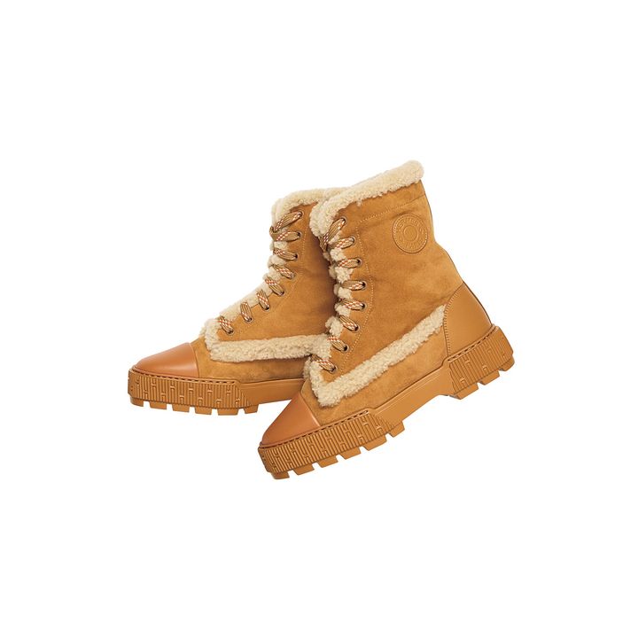 レースアップが可愛いショートブーツ“フレッシュ”に、暖かなスエード×ふわもこ素材が登場。デザインの可愛さはもちろん、快適な履き心地にも定評が。