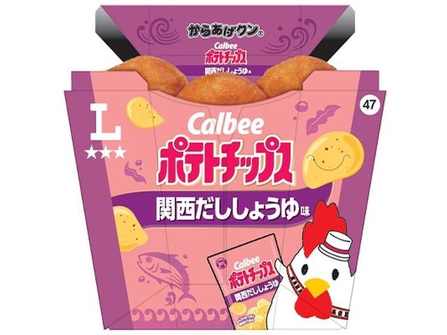ふんわり豊かなかつおの風味とまろやかな昆布のうまみが味わい深い地域限定発売「カルビーポテトチップス 関西だししょうゆ味」をからあげクンで再現しました。 【販売地域】近畿