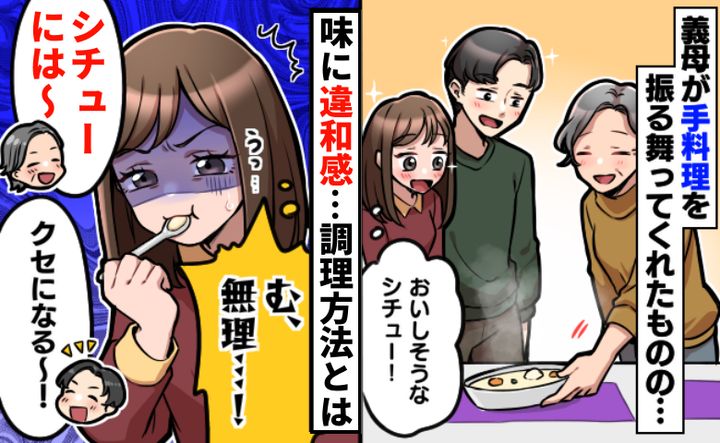 3. 義母の手料理に絶句「む、無理…!」夫はおいしそうに食べるけど…ひと口食べて違和感!調理方法とは