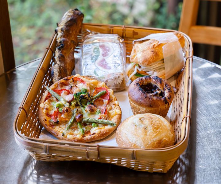 併設された工房で毎日手作りする、国産小麦の生地と豆類を使った多彩なパンが名物のお店。パンは持ち帰りだけではなく、喫茶スペースで季節のデザートやスープとともに味わうこともできます。