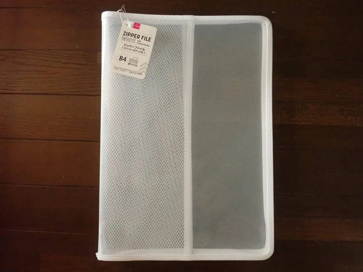 【ダイソー】おすすめ収納グッズ③B4ジッパーファイル(ホワイト、ポケット付)