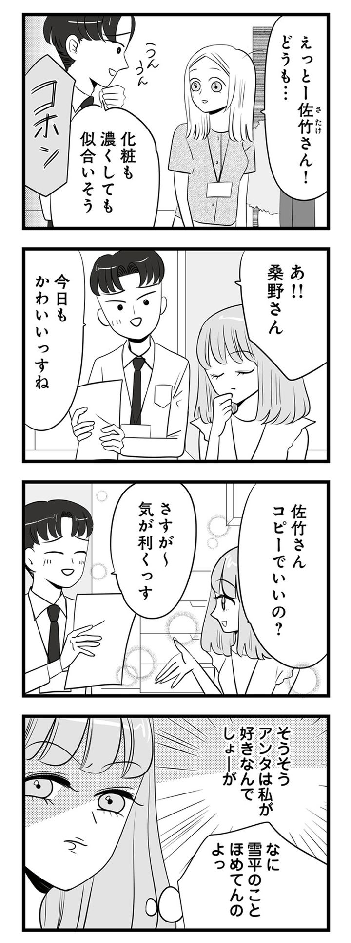 2. 「アンタは私が好きなんでしょ」女性社員が褒められるのがムカつく!男性社員との会話にすかさず割り込む【今日もワタシが一番カワイイ #4】