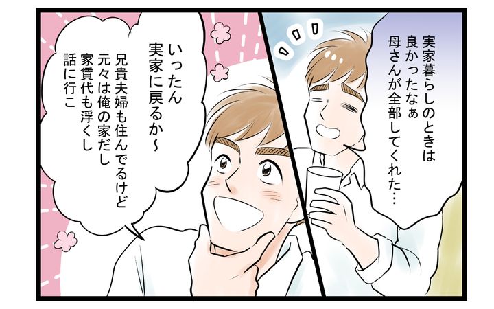 家事を頻繁に外注するほどお金に余裕もなく、しばらく実家に帰って身の回りの世話はやってもらうことを思いついたのですが、実家ではすでに両親と兄夫婦が同居しており、家族からは塩対応。そして母からは予想外の一言が……。