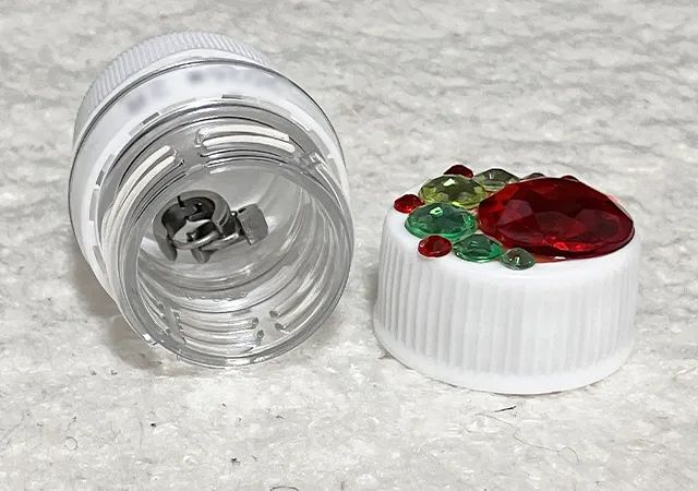 細々としたアイテムを仕舞うには、ペットボトルの蓋の小物入れはうってつけです。