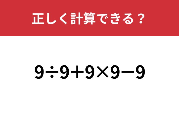 「9÷9+9×9−9」正しく計算できる?