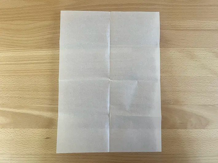 そのままトレーシングペーパーを縦半分に、パタンと折りましょう。