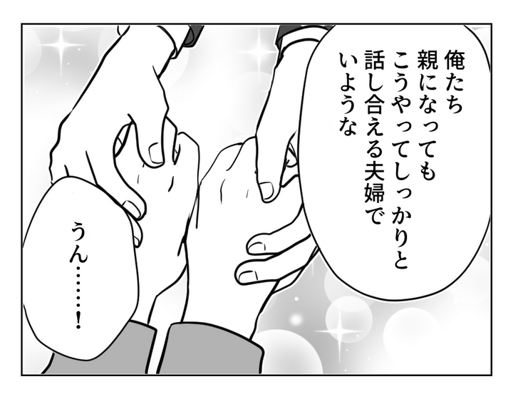 私(マユ)は、夫のコウヘイと2人暮らし。もうすぐ妊娠7ヶ月です。先日、ウチの両親に妊娠をようやく報告しました。するとその数日後に、義両親から「おめでとう!」との連絡が。私は義両親にはもっと後で報告するつもりでした。私が夫になぜ勝手に妊娠を伝えたのか詰めよると、私が実両親に報告したからいいと思ったと夫は言います。私が妊娠報告に慎重なのは、以前、流産を経験したから。そのときの義両親の言葉が私を追い詰めていったのです。勝手に報告した夫に対しても嫌悪感を抱いてしまいます。しかし友人の指摘で己の自分勝手さに気付き反省。夫と仲直りをしたのでした。