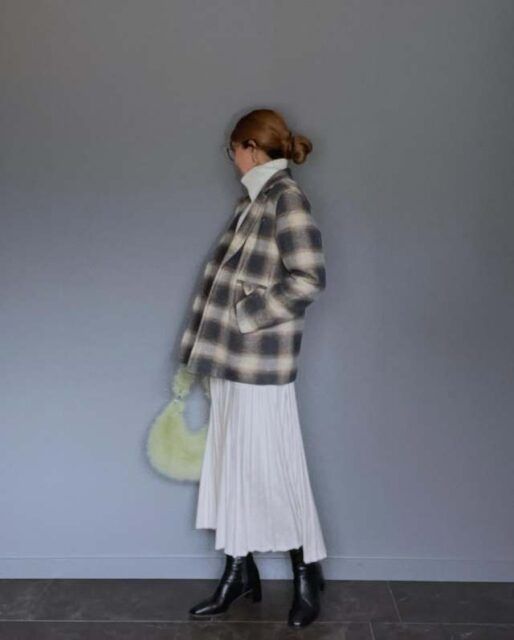 今季は黒よりもブラウンやグレーが人気。羽織るだけでおしゃれに見えるチェック柄も旬デザインです。春先まで使えるので中途半端な今の時季の買い足しにうってつけ。オーバーサイズを選ぶと中にも着込みやすいですよ。