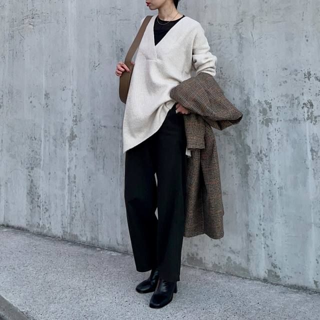 【2026年2月2日のコーデ】ゆるっとVネックでさりげなく着痩せ見え!