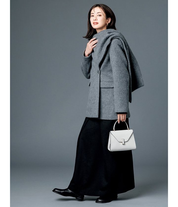 オーラ漂うコートを羽織って、シゴデキに。ミニのイジィデならパーティや仕事後の食事会にも華を添えます。
