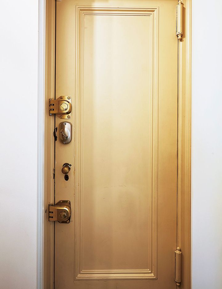 ガルボの恋人が住んだ部屋へと続く階段につながる扉。「このロックが面白いですよね。果たして、彼女は彼を追い出した後に鍵をかけたのでしょうか。それとも、ここに招き入れてから? 想像を搔き立てるこの扉は、どうしても残しておきたかったのです。私にとっては、これこそがガルボの亡霊です」とローゼン。 Ngoc Minh Ngo