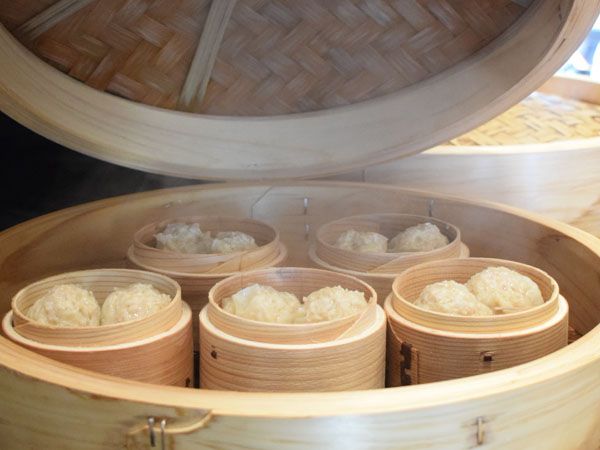 ・肉汁焼売(1個150円) 店内で包まれる焼売は、すでに味つけがされているので、そのまま食べるのがベスト。アツアツ、ジューシー!