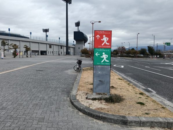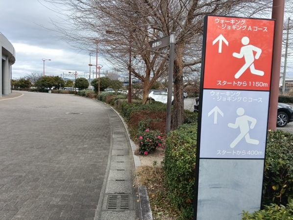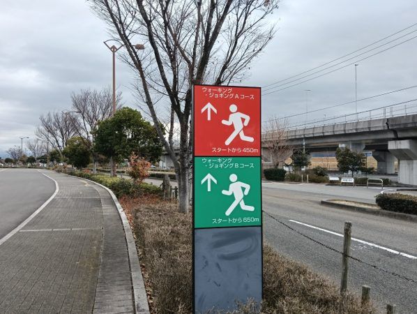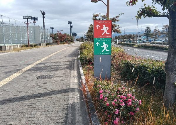 ウォーキングしているとコース表示がいろんな場所にあります。 ウォーキング・ジョギングコースが3種類あります。