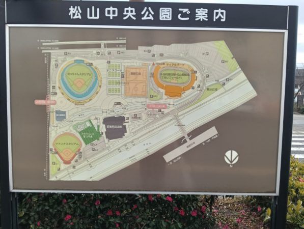 今回は平日の午前中にウォーキングをしてきました。 この日は5度とめちゃめちゃ寒い日でした。 週末に行くときは、午前中だったり午後に行ったりしています。 坊っちゃんスタジアム近辺(松山中央公園)は、野球場、プール、テニスコート、武道館などのスポーツ設備があります。