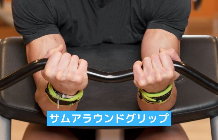 サムアラウンドグリップはウエイトを落とすリスクが低くなりますが、ローイング種目の場合、腕で引く意識になりやすくなってしまうかもしれません。